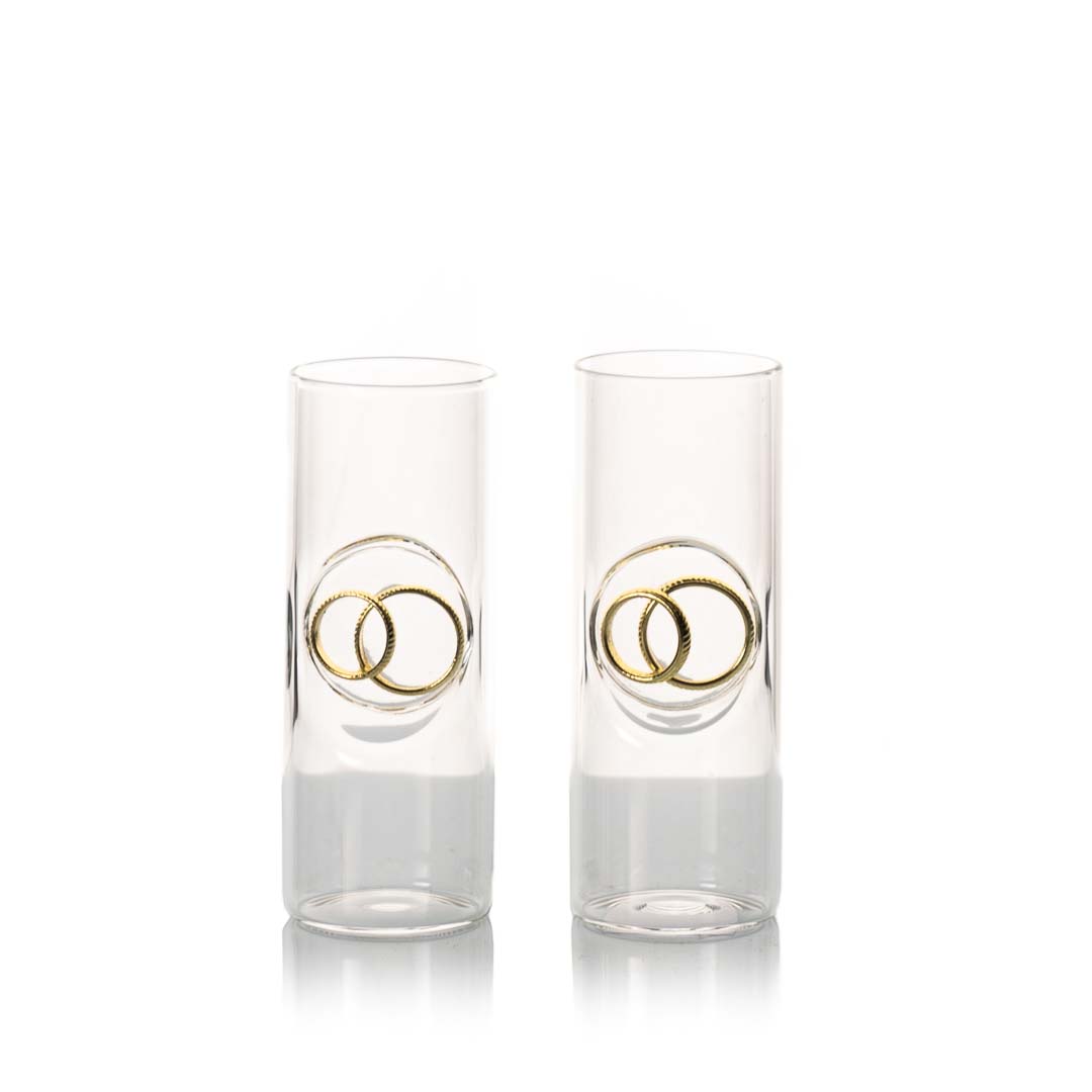 2 Eheringschnapsstamperl passend zu unseren Hochzeitsflaschen. Ringe in Silber oder Gold. Füllmenge bis zu 0,02l