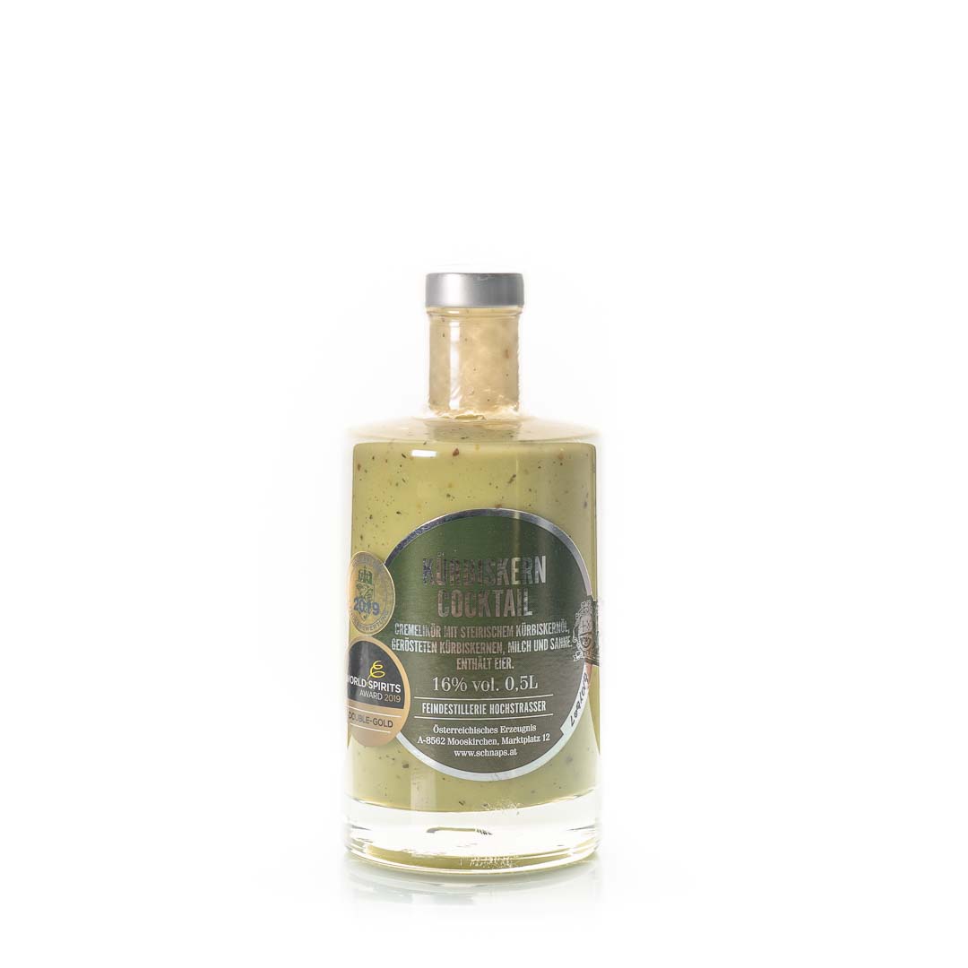 Der Cremelikör mit Steirischem Kürbiskernöl (g.g.A.) und selbst gerösteten Kürbiskernen duftet herrlich nach frisch gebackenem Biskuit.