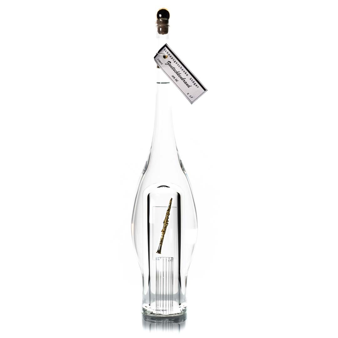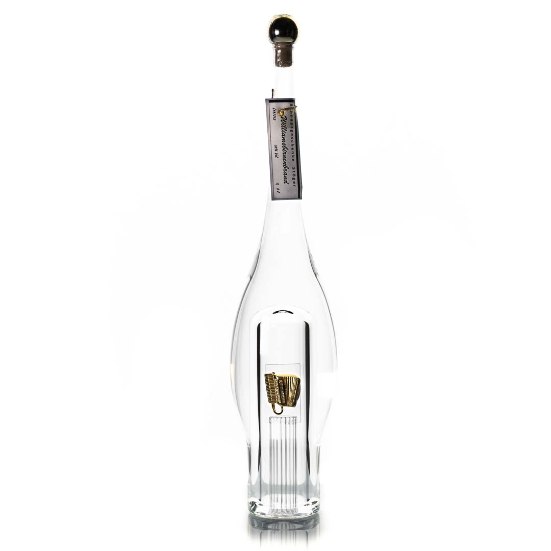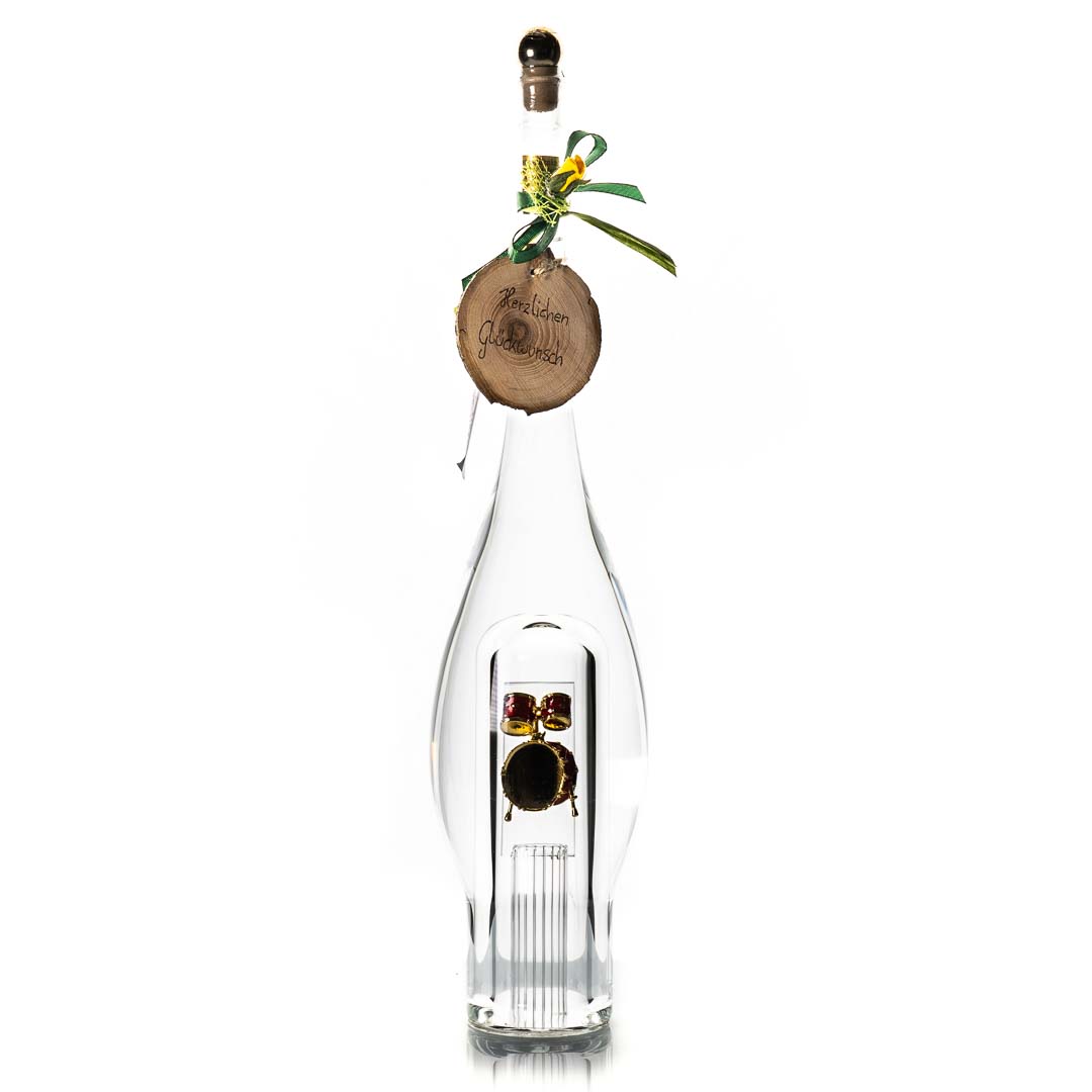 Mundgeblasene Flasche mit Hohlraum in der sich ein wählbares Objekt befindet, wunderschön verarbeitet. Flacheninhalt 0,7 wählbar. Flaschengröße 45cm